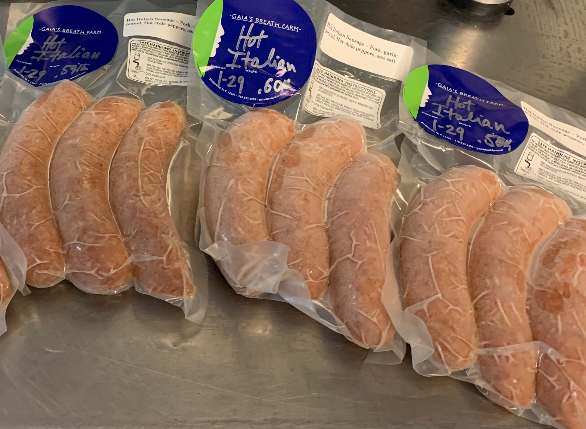 Hot Italian sausage ingredients - organic pork, biodynamic garlic, organic fennel, biodynamic Hot chile peppers, sea salt.